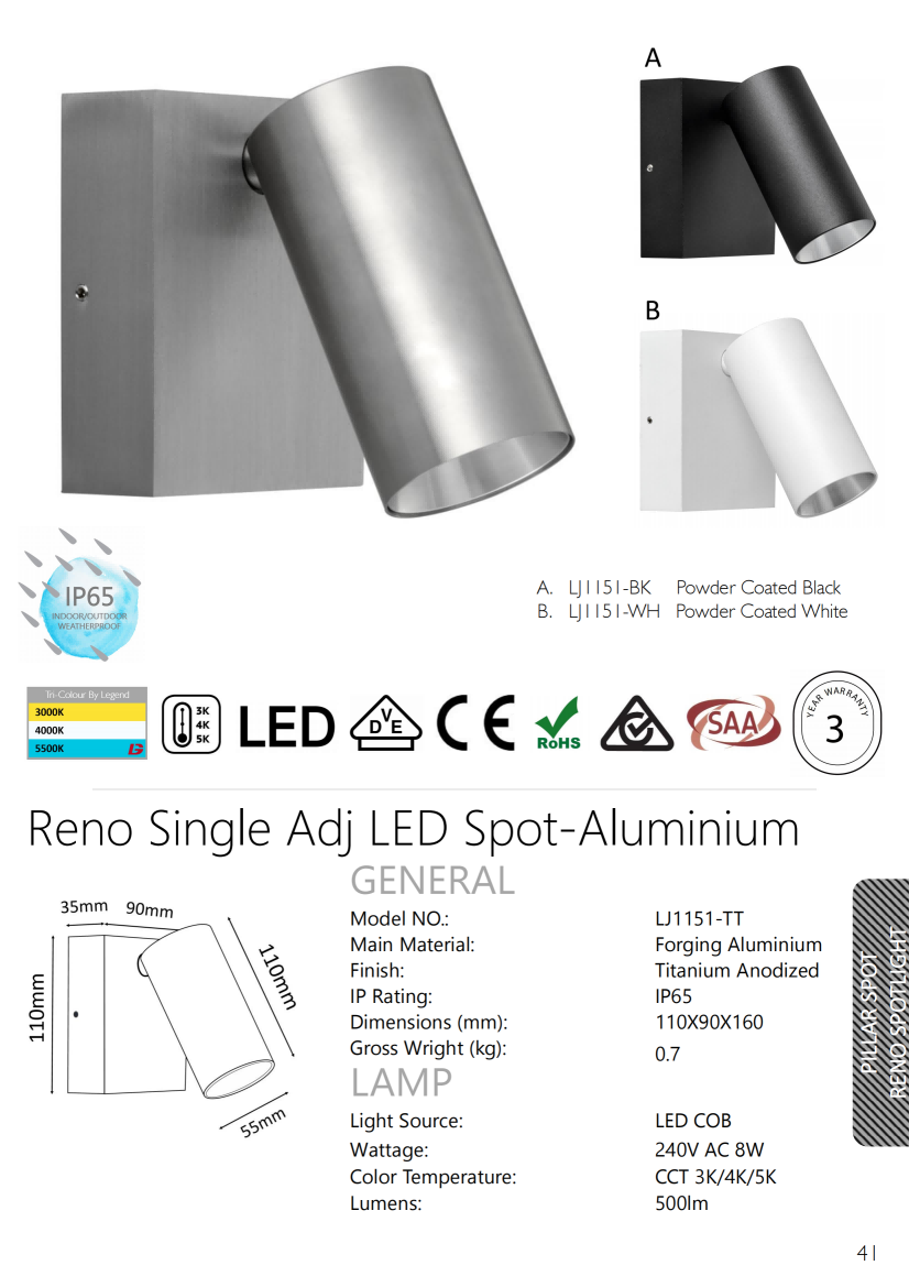 - Reno Single Adjustable Wall Pillar Spot Lights