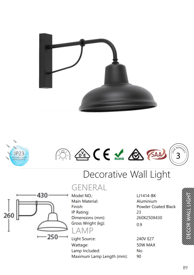 - Aluminium Black Decorative Wall Lights