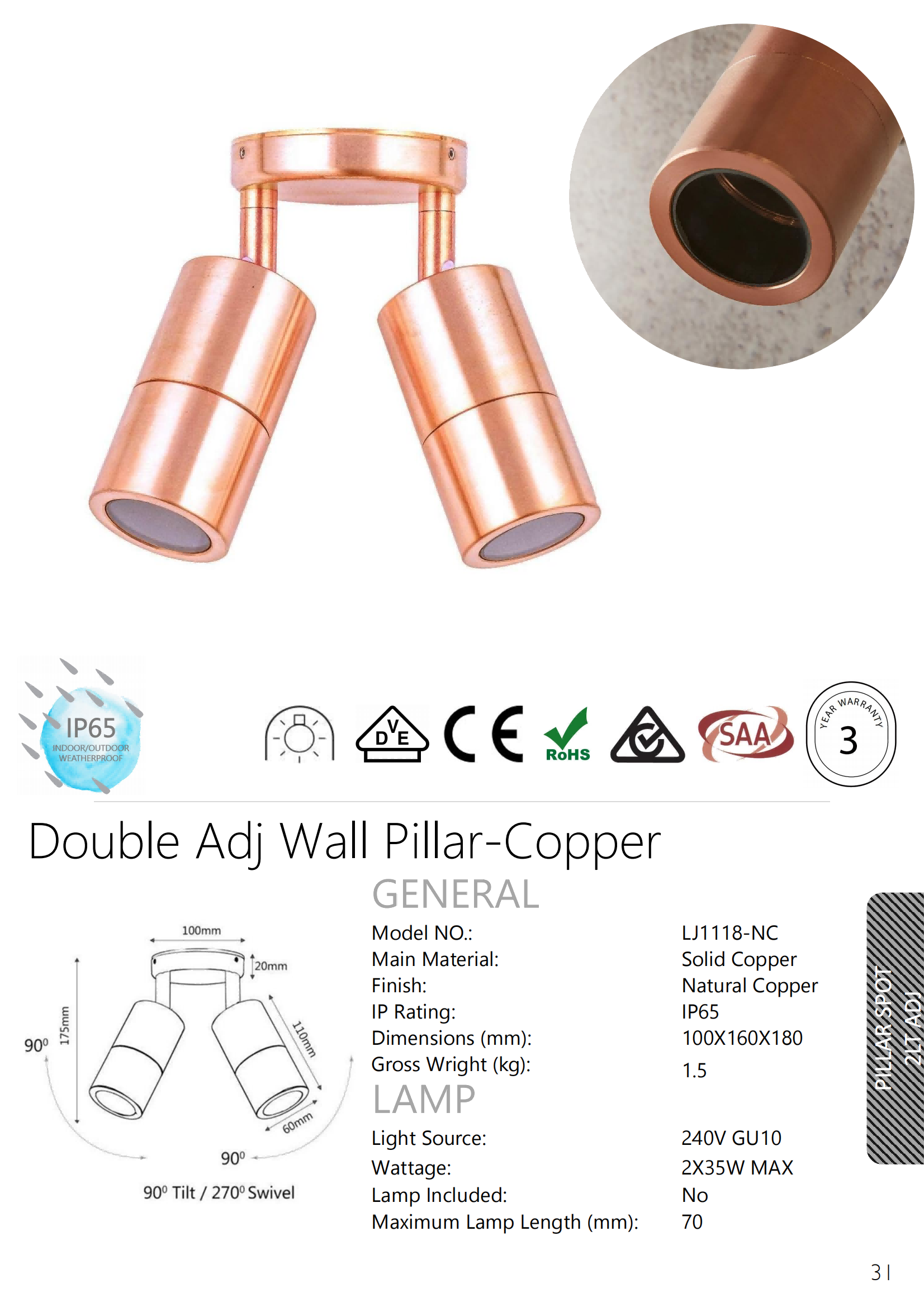 - Solid Copper Double Adjustable Spot Lights