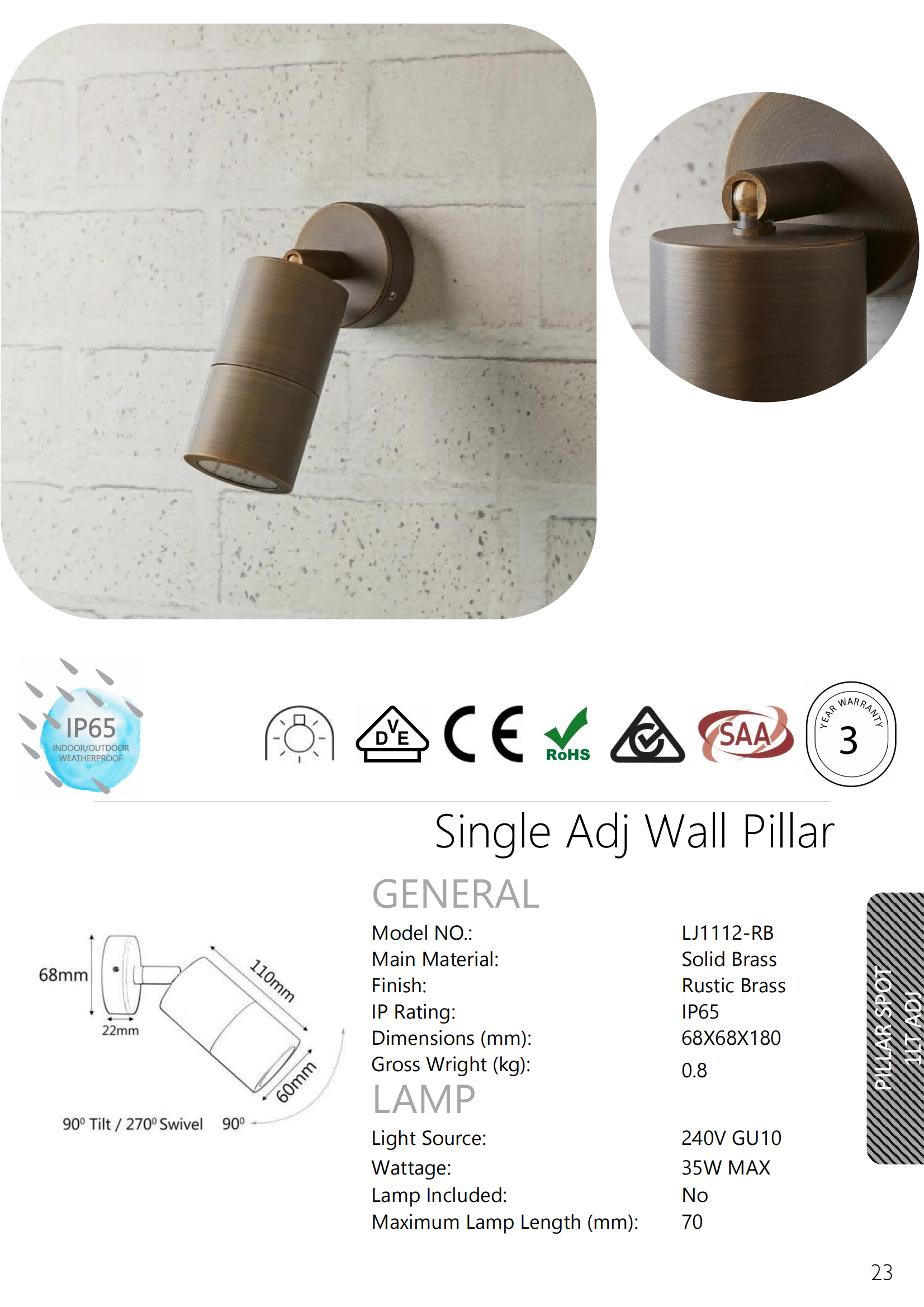 - Single Adjustable Wall Pillar Light